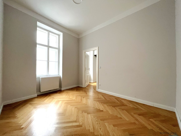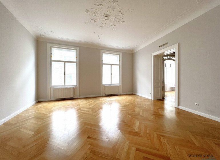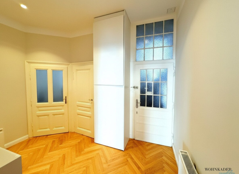 In sämtlichen Räumlichkeiten wurde edler Echtholzparkett verlegt, der dem Büro eine warme und zugleich elegante Atmosphäre verleiht. Die Sanitärräume – Badezimmer und separate Toilette – sind hochwertig mit hellem Marmor ausgestattet und unterstreichen den gehobenen Standard der Fläche.