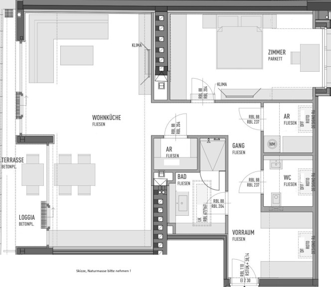 Die Parkettböden, die Außenjalousien sowie die Vollklimatisierung runden das sehr schöne Gesamtbild der Wohnung ab! Beheizt wird über eine Fußbodenheizung, welche über die Fernwärme betrieben wird!