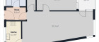 Der Grundriss überzeugt durch eine durchdachte Raumaufteilung: Über die Diele gelangt man zentral in die einzelnen Wohnbereiche. Es stehen ein großzügiger Wohn- und Essbereich mit rund 31 m², ein weiteres Zimmer mit ca. 13 m², eine separat abgetrennte Küche sowie ein Badezimmer zur Verfügung. Zusätzlich bietet ein Abstellraum praktischen Stauraum.