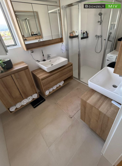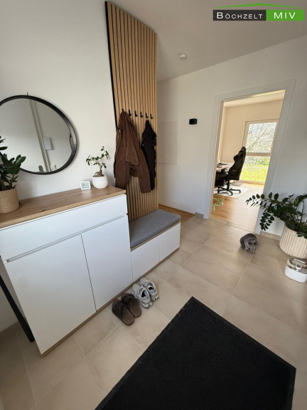 Die Wärme- und Warmwasseraufbereitung erfolgt über Fernwärme (Versorger Firma Bioenergie) in Verbindung mit einer Fußbodenheizung. Die Heizkosten werden direkt mit der Versorgungsfirma abgerechnet. Ihr zukünftiges Zuhause verfügt überdies natürlich über eine dem Stand der Technik entsprechende Elektroanlage samt -verteilung, HKLS-Anlage, sowie der Anschlüsse für Festnetz (Telekom/A1) und Kabel-TV (Ainet). Der Wohnraum, sowie auch die Schlafräumlichkeiten weisen einen TV-Anschluss vor. Es handelt sich hierbei um einen Holzbau der Firma Vario. Die 3-fach verglasten Kunststofffenster tragen nicht nur zu niedrigen Heizkosten bei, sondern sind bereits mit elektrischer Rollläden ausgestattet. Die Rollladenkästen sind für einen nachträglichen Einbau von Fliegenschutzrollos ausgerichtet (nicht verbaut). Die Aufpreise für den Insektenschutz finden Sie hinten in den Vermietungsunterlagen. In den Wohnräumlichkeiten wird ein Eichen-Parkettboden verlegt. In den Vorräumen, Sanitär, Abstell- und Technikräumen werden Fliesenböden verlegt. Ein Highlight der Wohnungen ist die moderne Küche der Marke Dieter Knoll in Hochglanz weiß mit hochwertigen Siemens-Geräten, Beleuchtung, integriertem Abfallsystem und jede Menge Stauraum für Sie und Ihre Liebsten!