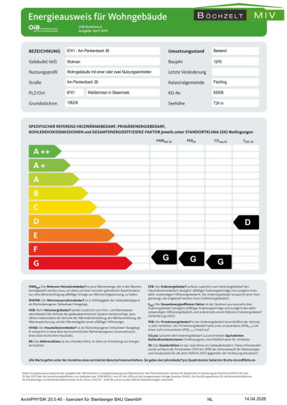 | Heizwärmebedarf: | G 263,90 kWh/m²a |