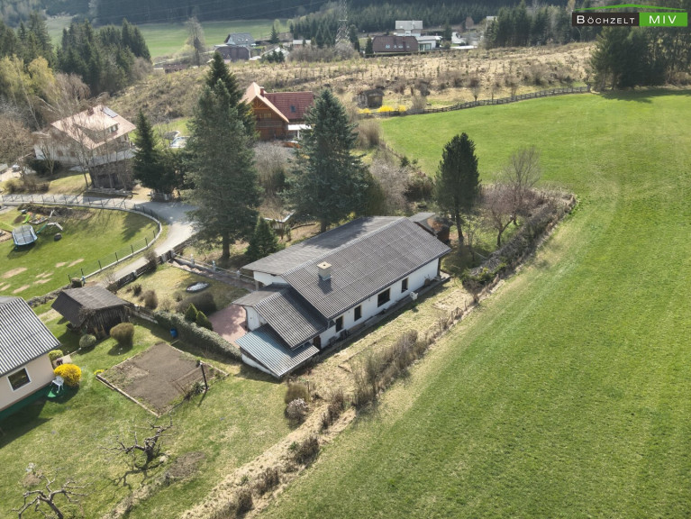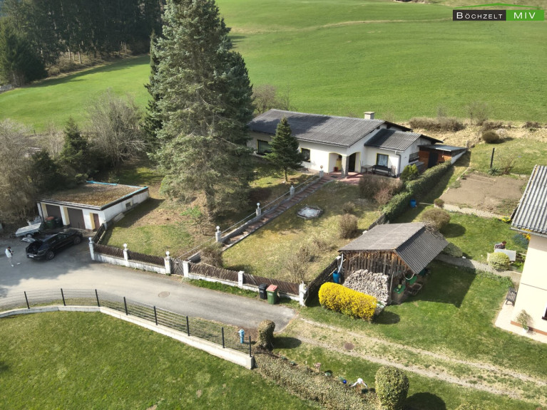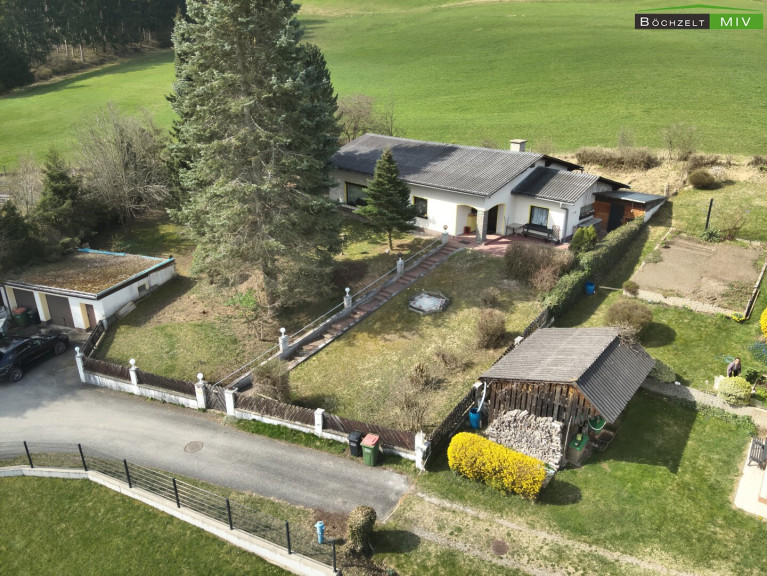 Diese Liegenschaft vereint ruhige, ländliche Wohnqualität mit einer außergewöhnlichen Aussichtslage über das Tal und einem großen, gut nutzbaren Grundstück. Der ebenerdige Bungalow ist ideal für jene, die Wohnen auf einer Ebene schätzen und sich ein Haus mit solider Substanz und individueller Note wünschen.