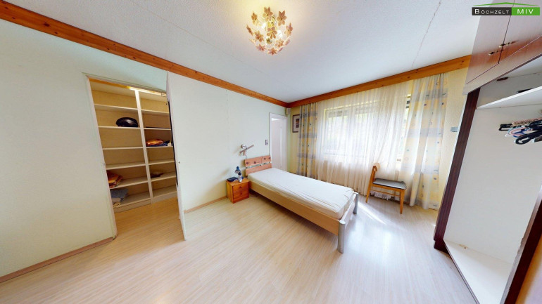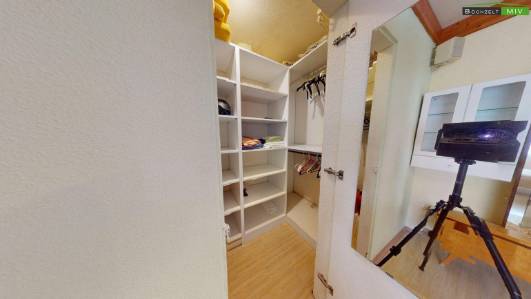 - Ein weiteres Schlafzimmer mit begehbarem Kleiderschrank und Einbaumöbeln, ausgestattet mit Laminatboden, Fußbodenheizung und Heizkörpern.
