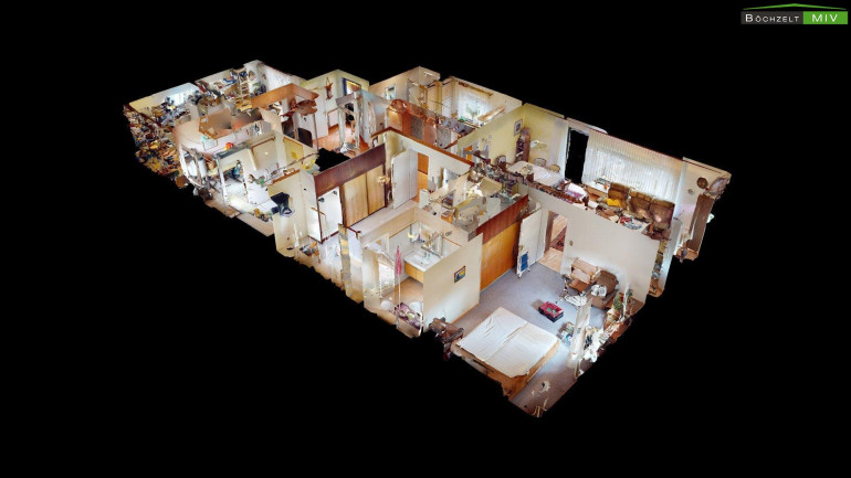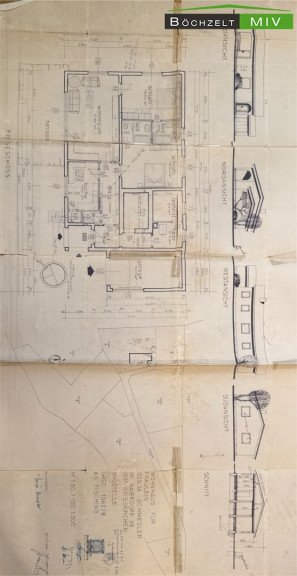 Das Wohnhaus wurde 1983 fertiggestellt und präsentiert sich in für das Baualter typischer Ausstattung mit hochwertigem Tischlerausbau im Innenbereich. Das Objekt wurde über die Jahre gepflegt, weist aber keine umfassenden energetischen Sanierungen auf. Die räumliche Aufteilung und die große Fensterfront im Wohnbereich schaffen ein helles, freundliches Wohnambiente mit direktem Gartenzugang. Auf dem Grundstück befinden sich neben dem Wohnhaus eine Doppelgarage aus dem Jahr 1991 (derzeit aufgrund Feuchtigkeitsschäden sanierungsbedürftig) sowie eine Gartenlaube/Gerätelaube und ein Pavillon, die den Nutzwert des Gartens erhöhen.