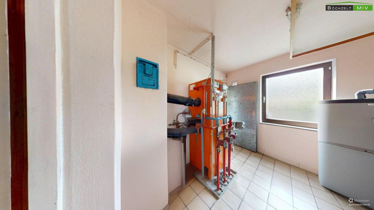 - Heizraum mit Kombikessel für Öl und Holz, gefliestem Boden und modernisierter Steuerung,