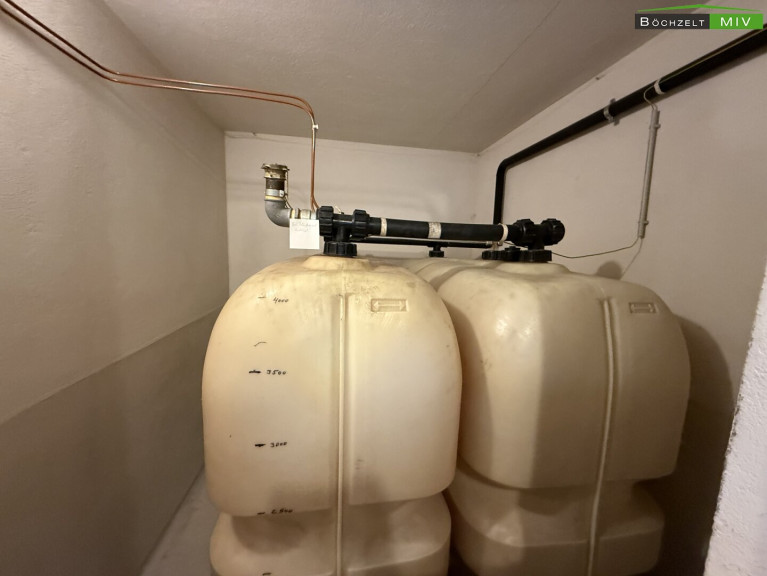 - Heizöllagerraum mit zwei Kunststofftanks zu je 2.000 l (insgesamt ca. 4.000 l),