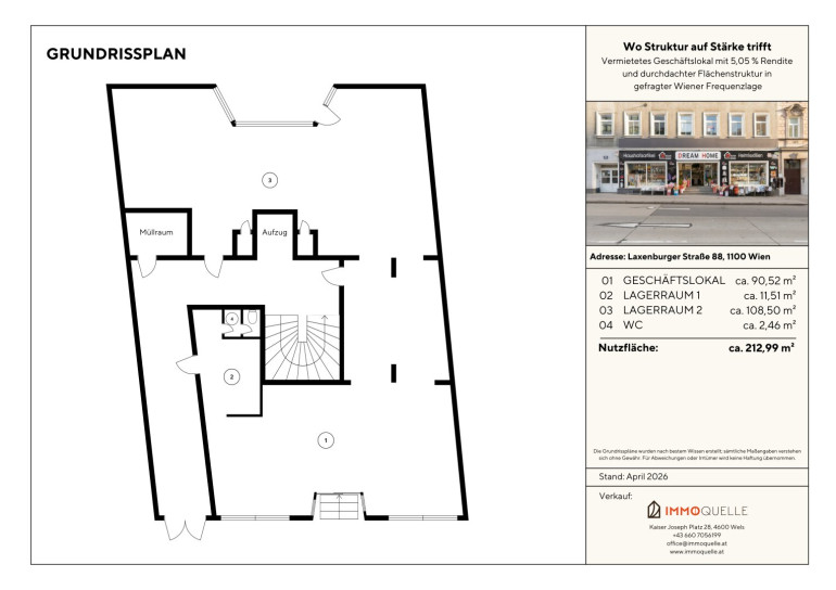 Vermietetes Geschäftslokal mit 5,05 % Rendite und durchdachter Flächenstruktur in gefragter Wiener Frequenzlage