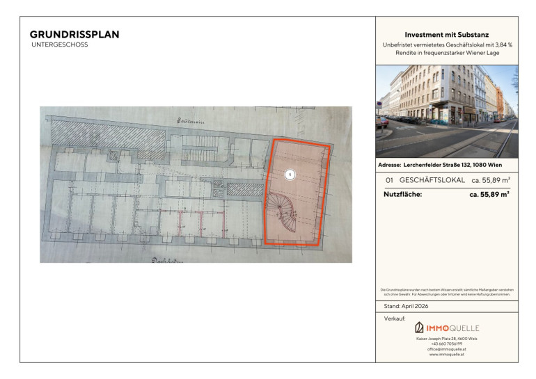 Die Kombination aus frequenzstarker Lage, klar strukturierter und effizient nutzbarer Fläche sowie stabiler Vermietung macht dieses Geschäftslokal zu einer überzeugenden Gelegenheit für Anleger mit Fokus auf nachhaltige und wertbeständige Investments in Wien.