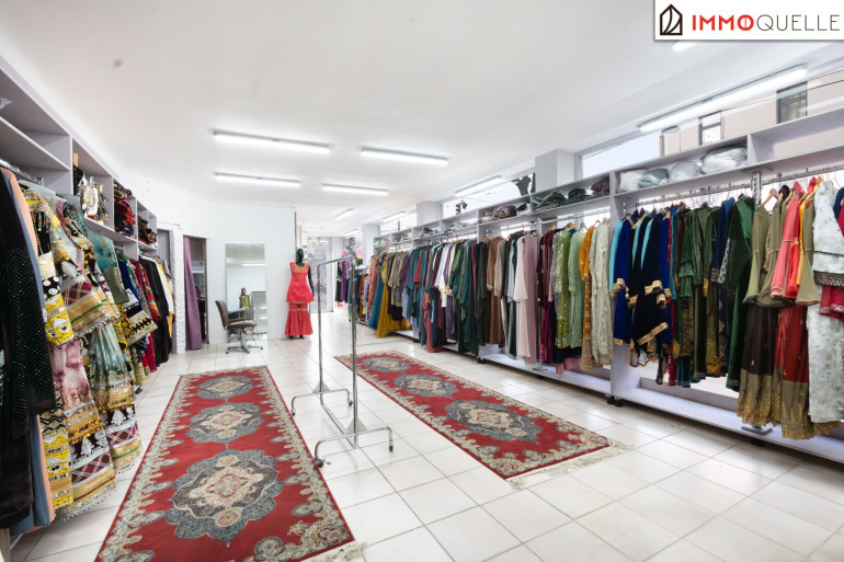 Großzügige Glasfronten zur Straßenseite sorgen dabei nicht nur für eine ausgezeichnete Sichtbarkeit, sondern lassen viel Tageslicht in den Innenraum strömen. Dadurch entsteht eine helle, einladende Atmosphäre, die sowohl die Präsentation der Ware als auch die Wahrnehmung des Geschäfts im Straßenbild maßgeblich unterstützt.