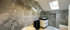 - Badezimmer mit freistehender Badewanne