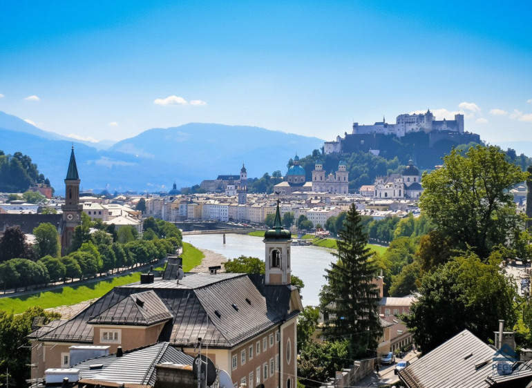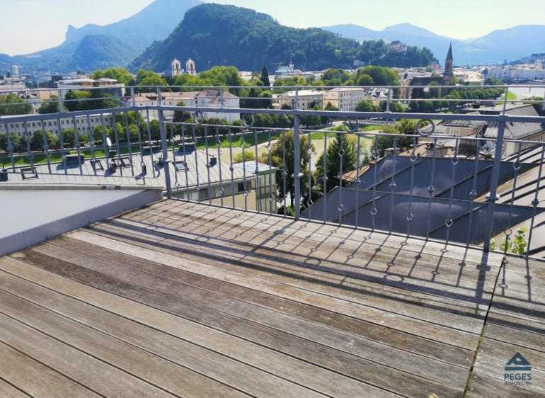 Besonders hervorzuheben ist hier vor allem der traumhafte Ausblick über die Salzburger Altstadt, das Salzachufer sowie auf die Festung Hohensalzburg, der sich sowohl von der Dachterrasse als auch vom Wohnraum aus genießen lässt.