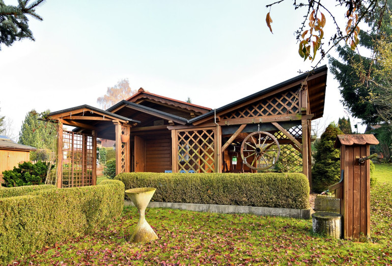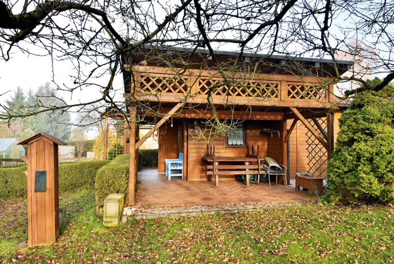 - Eine Gartenhütte ist ebenso Bestandteil der Ausstattung.