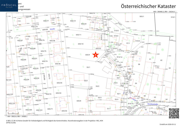 Das Grundstück ist derzeit noch nicht aufgeschlossen; die Aufschließungsgebühr wird im Zuge der Baureifmachung fällig und ist mit der Gemeinde abzustimmen.
