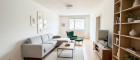 Die Wohnung verfügt über ein großzügiges Wohnzimmer, ein separates Schlafzimmer sowie eine voll ausgestattete Küche mit Essbereich und Blick in den begrünten Innenhof.