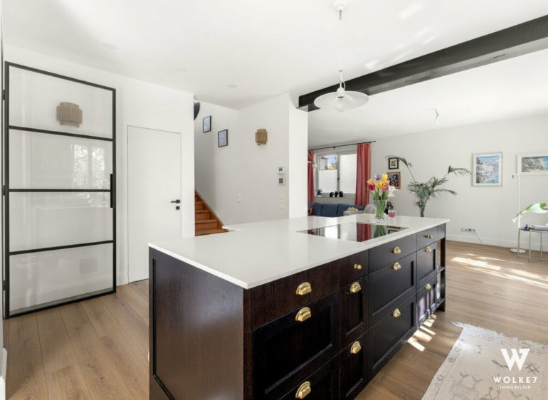 Die Küche ist weit mehr als ein funktionaler Raum – sie ist ein Design-Statement. Ausgestattet mit Siemens-Geräten auf Top-Niveau und vollständig in Naturstein ausgeführt, vereint sie Ästhetik und Funktionalität auf höchstem Niveau. Hier wird Kochen zum Erlebnis – egal ob für den Alltag oder für Gäste.