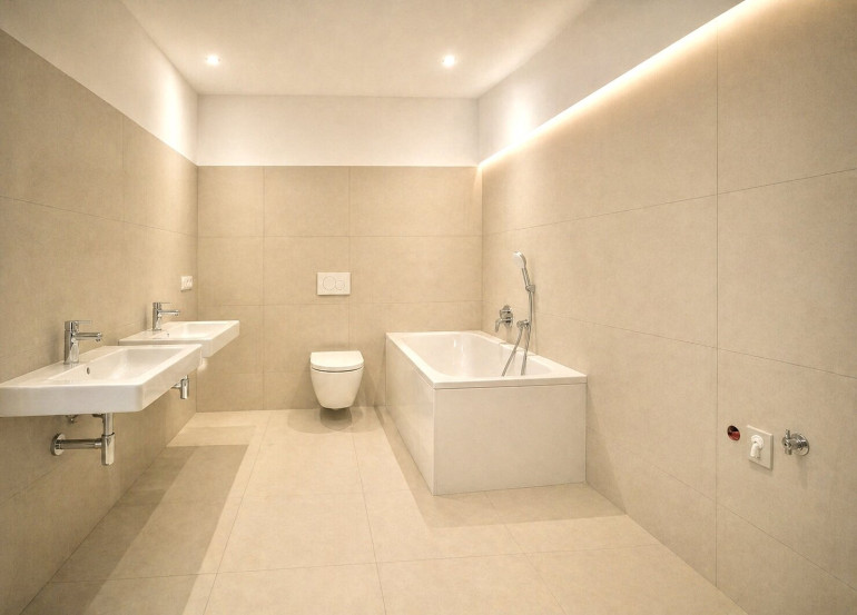 Feinsteinzeugfliesen in Bad und WC