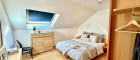 Über das Stiegenhaus gelangen Sie über eine elegante Galerie in den privaten Rückzugsbereich des Hauses. Zwei separate Schlafzimmer stehen Ihnen zur Verfügung, jeweils mit eigenem Badezimmer. Eine ideale Raumaufteilung für kleine Familien, Gäste oder jene, die Arbeiten und Wohnen perfekt miteinander verbinden möchten.