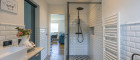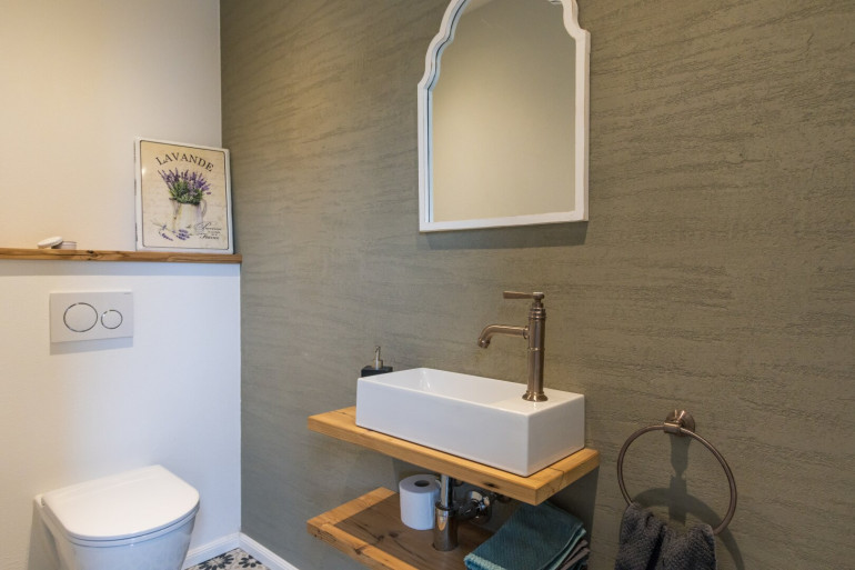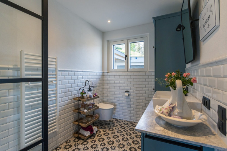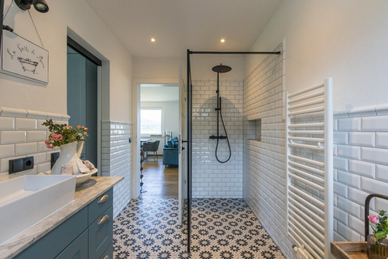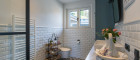 Ein Highlight dieser Immobilie ist die moderne Haustechnik: Erdwärme und Solarenergie sowie Photovoltaik sorgen für eine nachhaltige und kosteneffiziente Energieversorgung, während die Fußbodenheizung in allen Wohnräumen für wohlige Wärme an kalten Tagen sorgt. Die Einbauküche ist funktional und stilvoll gestaltet – hier macht Kochen Freude. Das EN-SUITE-BAD ist der Hingucker.