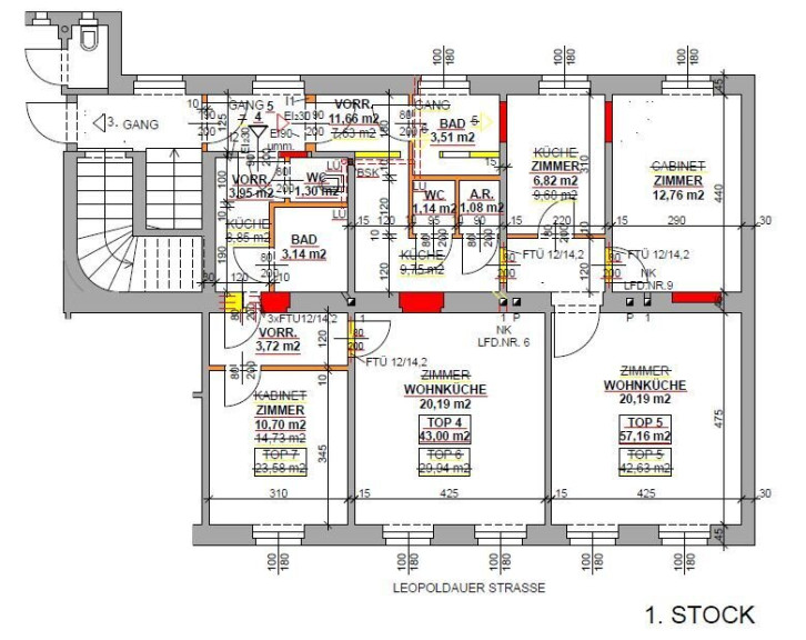Die Wohnungen liegen in der Leopoldauer Straße in 1210 Wien und gliedern sich wie folgt auf: