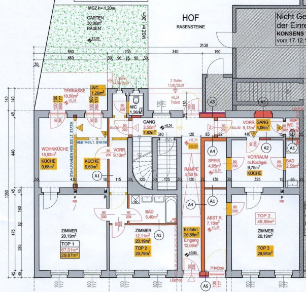 - Garagenplätze: 13,68m2 pro Stellplatz - 3 Stellplätze den Wohnungen zugeordnet = 41,04m2.