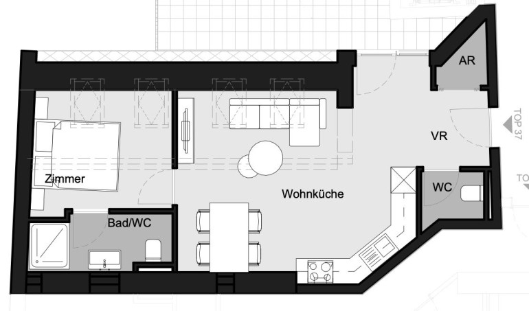 TOP 37 – 2 Zimmer mit großer Terrasse