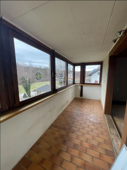 Das Haus befindet sich in einem altersentsprechenden sanierungsbedürftigen Zustand und bietet eine hervorragende Basis für Modernisierungen. Es wurde die Terrasse im Erdgeschoss und der Balkon im Obergeschoss mittels Glaselemente als Wintergarten geschlossen. Diese Flächen wurden zur Wohnfläche addiert.