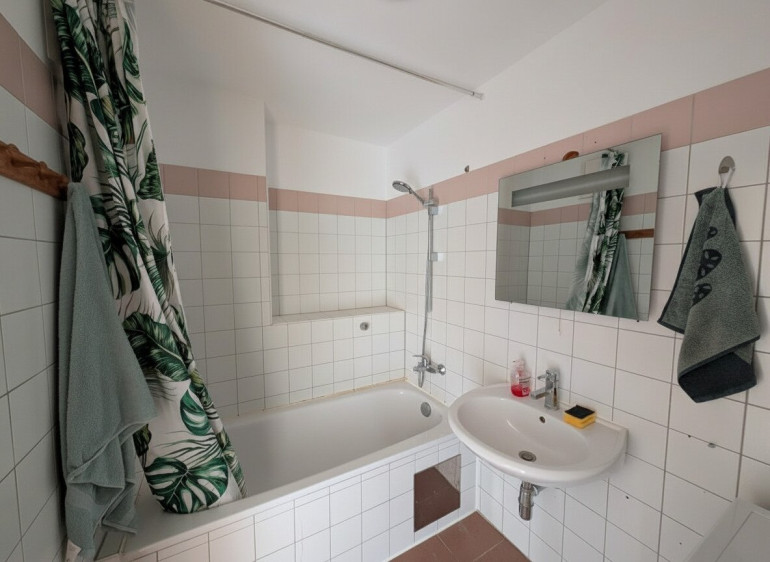- Badezimmer: Ausgestattet mit Badewanne und praktischem Waschmaschinenanschluss.