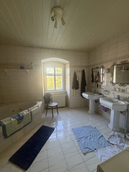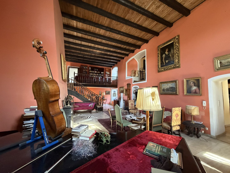 - Wohnräume umfassen unter anderem 2 große Säle (Klavierraum mit offenem Kamin und Speisesaal), 6 Schlafzimmer, Sauna, Renaissance-Raum, 2 kleinere Salons, eine große Küche, 3 Badezimmer und 3 Toiletten sowie 2 weitere Toiletten im ebenerdigen Garagenteil