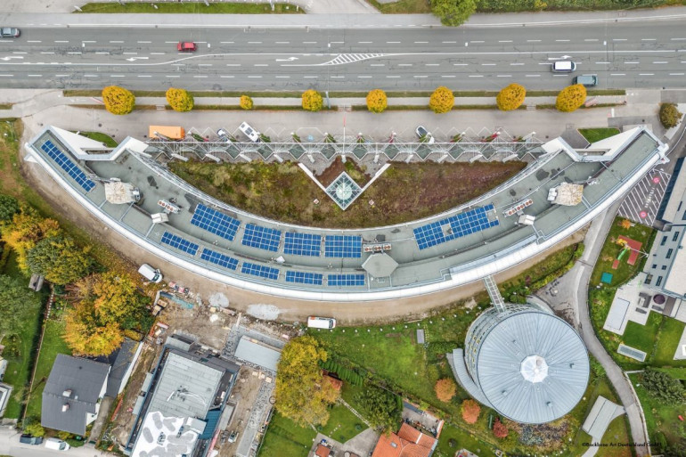 Die Infrastruktur des Bürokomplexes umfasst gesamt 180 Garagenplätzen, diverse Lagerbereiche und Technikräume, sowie einen Fernwärmeanschluss und eine Werkstätte. Sicherheit und Komfort werden durch schlüsselkartengeschützte Zugänge, drei Personenaufzüge, eine Brandmelde- und CO-Warnanlage sowie eine effiziente Entlüftungsanlage gewährleistet. Auf dem Flachdach wurde im Jahr 2020 nachträglich eine Photovoltaikanlage zur Energiegewinnung installiert. Eine Glasfaser-Verbindung wird sowohl von der Salzburg AG als auch von A1 bereitgestellt. An der Seite zur Alpenstraße hin ist das Gebäude mit einer verglasten Lärmschutzwand ausgestattet, die das Wohlbefinden der Angestellten während der Arbeitszeit fördert.