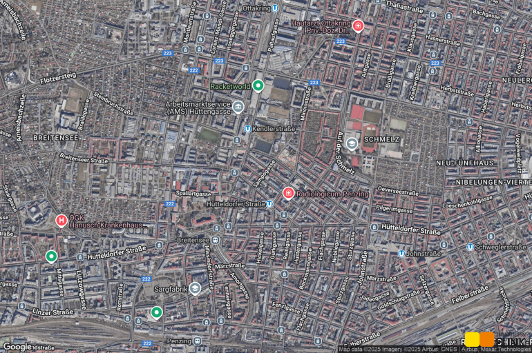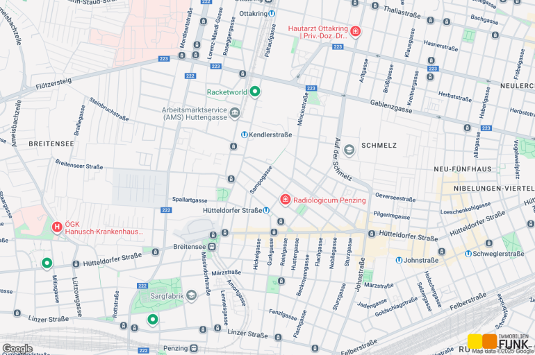 Die Liegenschaft befindet sich im 14. Wiener Gemeindebezirk in der Sampogasse, zwischen Hütteldorfer Straße und Kendlerstraße. In unmittelbarer Umgebung befinden sich zahlreiche Einkaufmöglichkeiten für den täglichen Bedarf. Die Anbindung an den öffentlichen Verkehr ist ausgezeichnet: die Haltestellen der Straßenbahnlinie 49 und 10 sowie die der Autobuslinien 10A, 12A und 63A liegen in Gehweite. Die U-Bahn-Station Kendlerstraße (Linie U3) ist in etwa drei Minuten zu Fuß erreicht. Die Fahrzeit in die Wiener Innenstadt beträgt rund 12 Minuten.