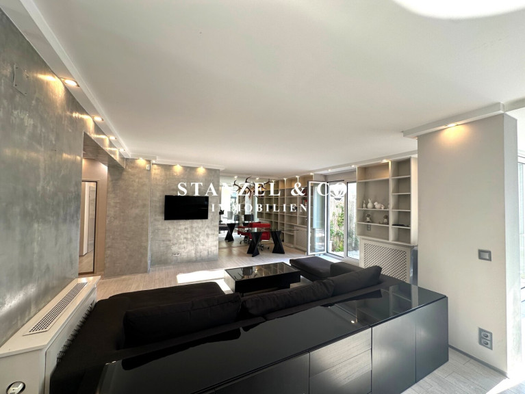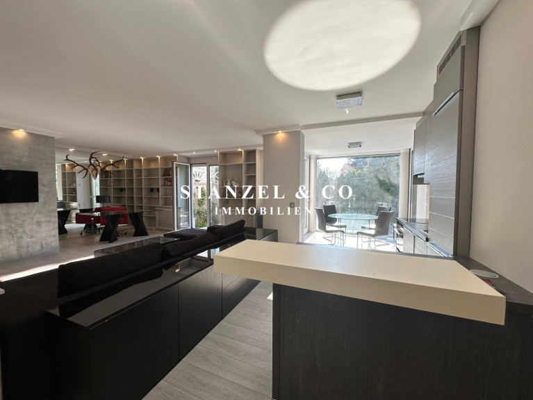 Parkett, Dielenboden, Fliesen, Gas, Zentralheizung, Wohnküche / offene Küche, Einbauküche, Personenaufzug, Ostbalkon, Westbalkon, Bad mit Fenster, Dusche, Kabel/Satelliten-TV, Garage, Alarmanlage, Sauna, Wasch/Trockenraum