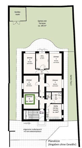 - Zimmer Nr. 5: Fläche: ca. 14m² * ab August 2026