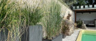 Der Poolbereich bildet den exklusiven Mittelpunkt des Gartens. Eingebettet in Naturstein, umgeben von Ruhezonen und üppiger Bepflanzung, entsteht hier ein privates Refugium mit beinahe mediterranem Flair.