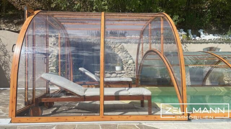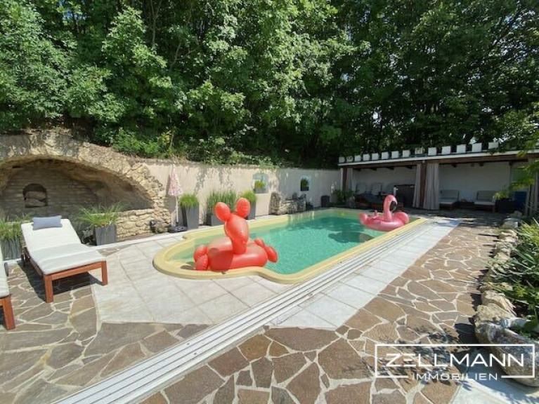 Großzügige Raumstrukturen, hochwertige Sanierung, ein beeindruckender Fernblick sowie eine liebevoll gestaltete Garten- und Poollandschaft schaffen eine Immobilie, die sich deutlich vom üblichen Angebot abhebt.