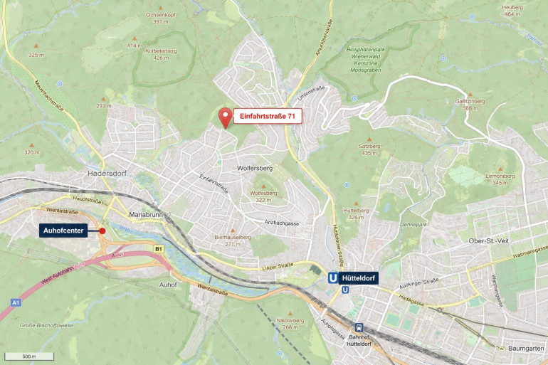 Toplage in der Einfahrtstraße am Wolfersberg – absolute Ruhe, viel Grün und perfekte Anbindung über Hütteldorf.