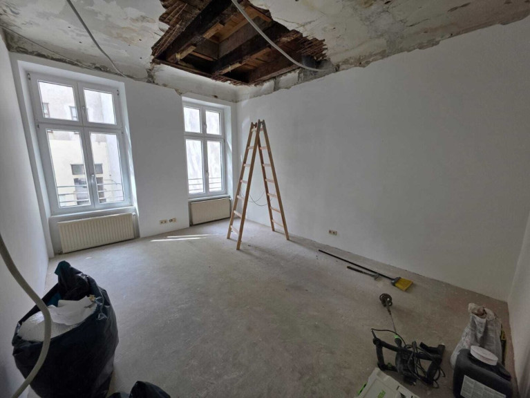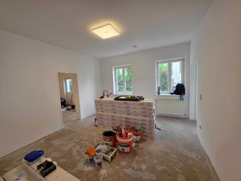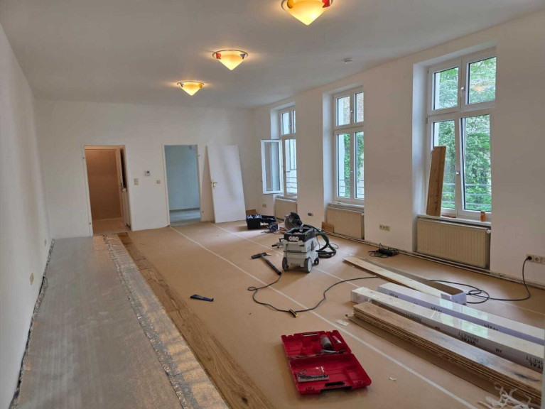 In den Aufenthaltsräumen wird derzeit ein neuer Holzboden verlegt; im Anschluss werden die Wände frisch ausgemalt.