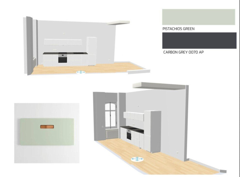 Wohnzimmer mit Zugang zum Abstellraum (mit Waschmaschinenanschluss), Schlafzimmer, separate Einbauküche (Küche ist aktuell noch in Fertigstellung siehe 3D Plan), Vorzimmer,