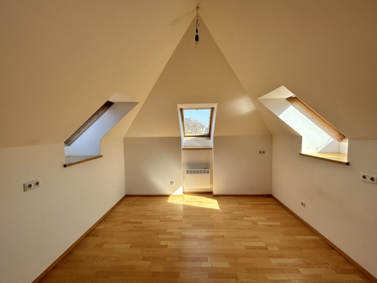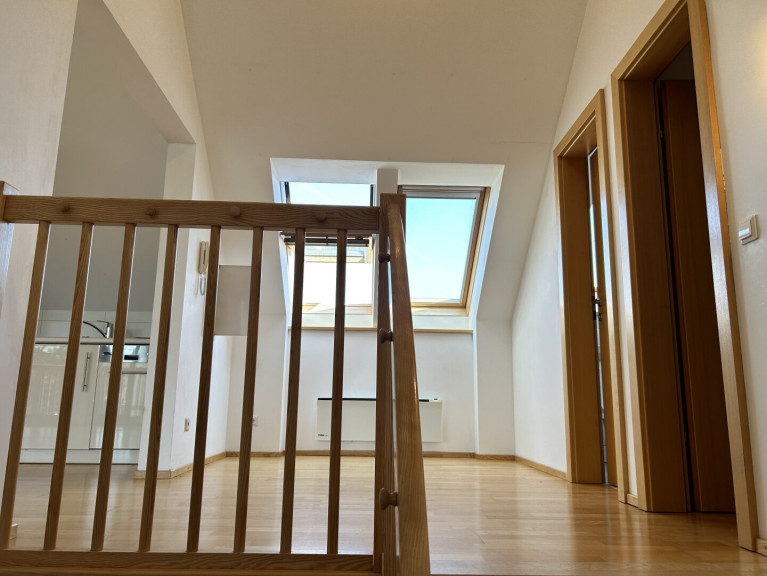 Sie betreten den Vorraum im Erdgeschoss, über eine Treppe erreichen Sie die Räumlichkeiten im Obergeschoss. Vom zentralen Vorraum gelangen sie ins Gäste-WC sowie in den Abstellraum. Durch die offene, helle Wohnküche gelangen Sie auf den Balkon und auch weiter zu den beiden Schlafzimmern sowie dem Badezimmer.
