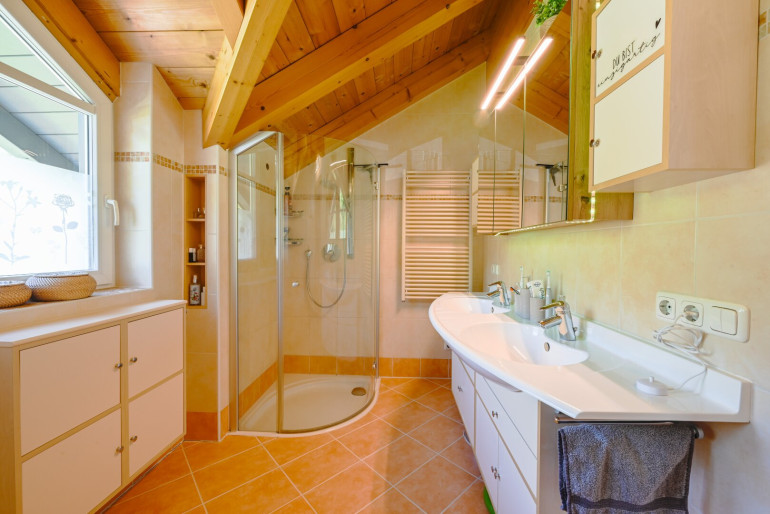 - Wellness: Eine hochwertige Wärmekabine der Firma Physiotherm sowie das helle Bad mit Badewanne und Dusche laden zum Entspannen ein.