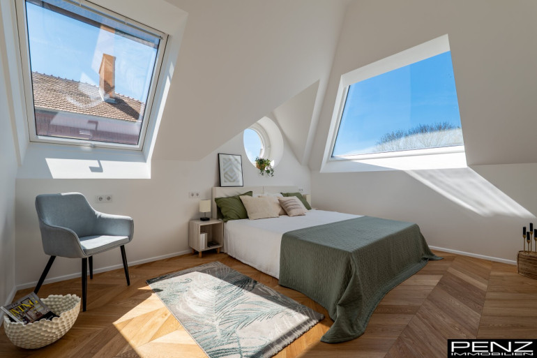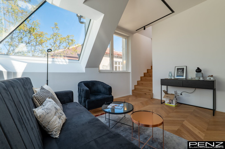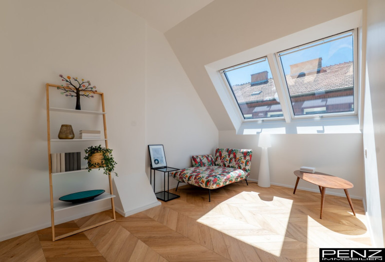 Diese traumhafte Wiener Stilaltbau- Dachgeschosswohnung wurde vollständig revitalisiert und neu ausgeführt in moderner Architektur. Die 3-Zimmer-Wohnung erstreckt sich über 92m2 Wohnfläche sowie 8m2 Balkon (Süd West) und 56m2 Dachterrasse mit Rundumblick über Wien!