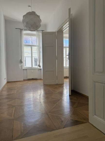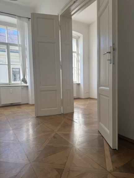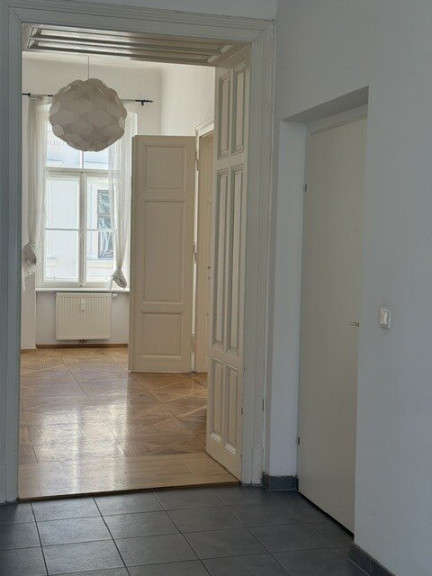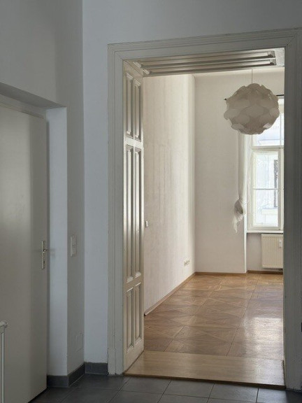 Der Vorraum der Wohnung ist ebenso lichtdurchflutet, freundlich und sehr großzügig geplant worden sodass der gesamte Eingangsbereich sehr einladend wirkt. Die hohen Räume unterstreichen den typischen Altbau und verleiht der Wohnung einen extra Charme.