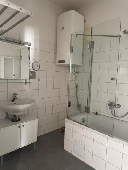 Das Badezimmer mit Badewanne lädt nach einem langen Tag zum Entspannen ein. Hier können Sie Ihre persönliche Wellness-Oase gestalten und den Stress des Alltags hinter sich lassen.