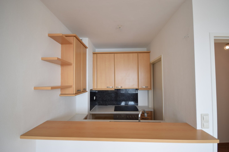 Die Wohnung selbst ist eingeteilt in einen kleinen Vorraum, Schlafbereich Richtung Osten, von dort aus kommt an in das gut aufgeteilte Badezimmer mit Badewanne/Dusche/Waschtisch/Toilette und WM-Anschluss. Auch vom Vorraum ist die Küche begehbar, diese ist klein aber fein und offen zum Wohnbereich hin. Zu guter letzt kommt man dann noch in den hellen und sonnigen Wohnbereich mit Ausgang auf den herrlichen Balkon wo man eine perfekte Aussicht und den Sonnenuntergang genießen kann.
