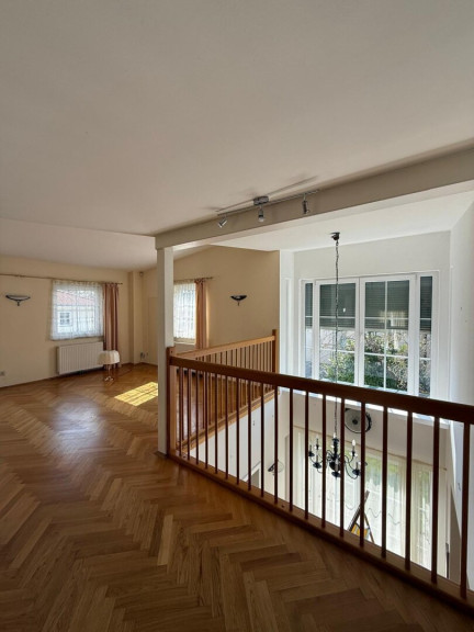 Im Obergeschoss setzt sich das durchdachte Konzept fort: Ein großzügiges Hauptschlafzimmer mit einem Ankleideraum (aktuell durch einen Einbauschrank abgeteilt) welches ebenfalls Zugang zu einem großen Balkon bietet. Der Zugang zum Balkon erweitert den Wohnraum nach außen und bietet einen ruhigen Rückzugsort mit Blick ins Grüne. Weiters gibt es eine aktuell offene sehr helle Galerie, welche jedoch leicht zu einem weiteren Schlaf- oder Arbeitszimmer abtrennbar wäre.