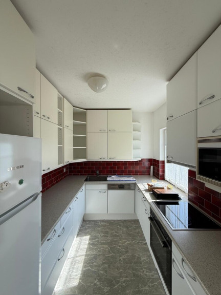 Parkett, Einbauküche, Bad mit Fenster, Badewanne, Dusche, Garage