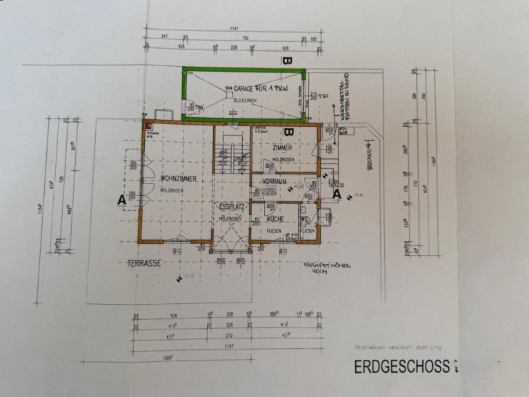Eine großzügige Garage mit ca. 23 m² bietet nicht nur Platz für Ihr Fahrzeug, sondern zusätzlichen Stauraum.