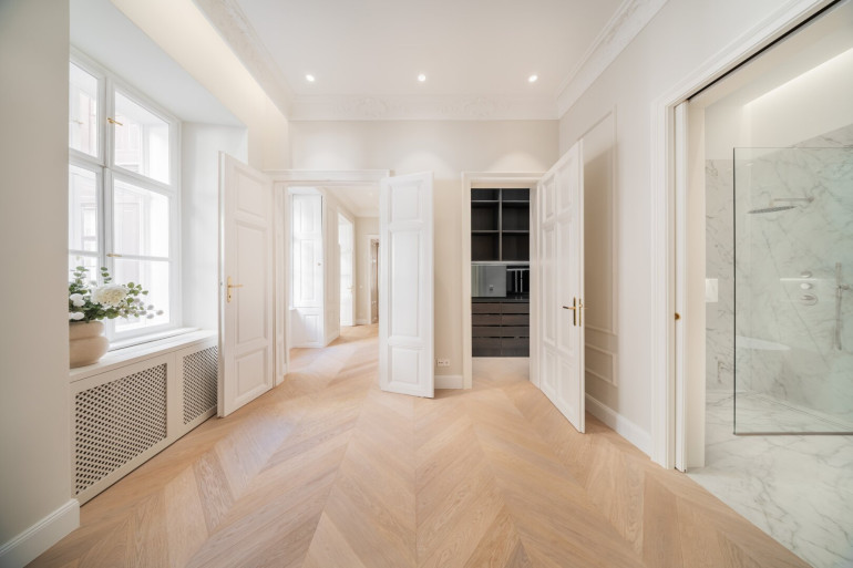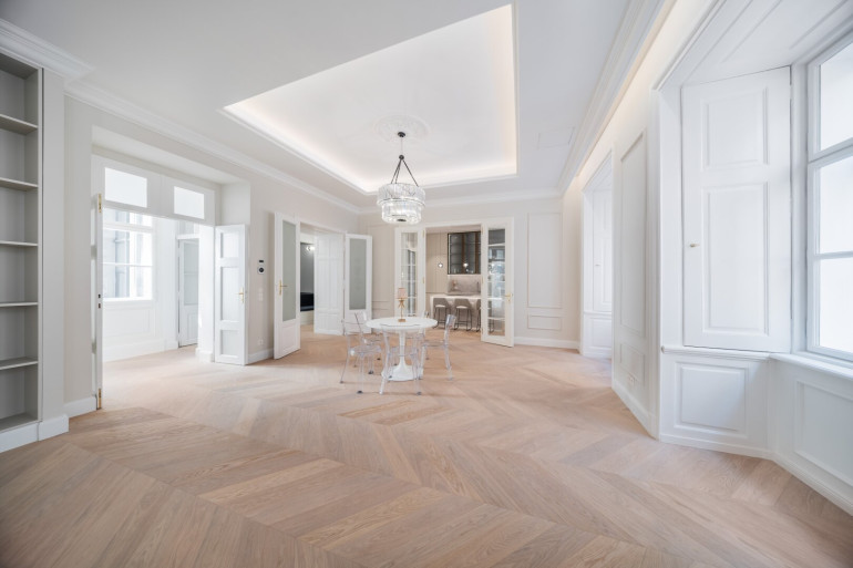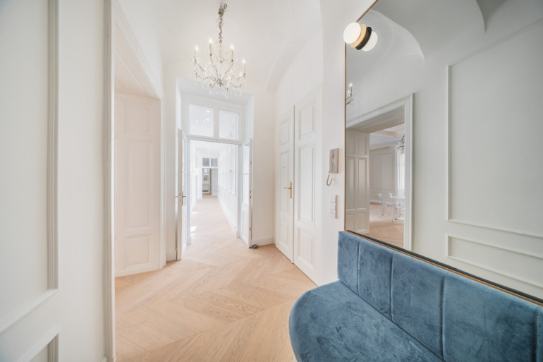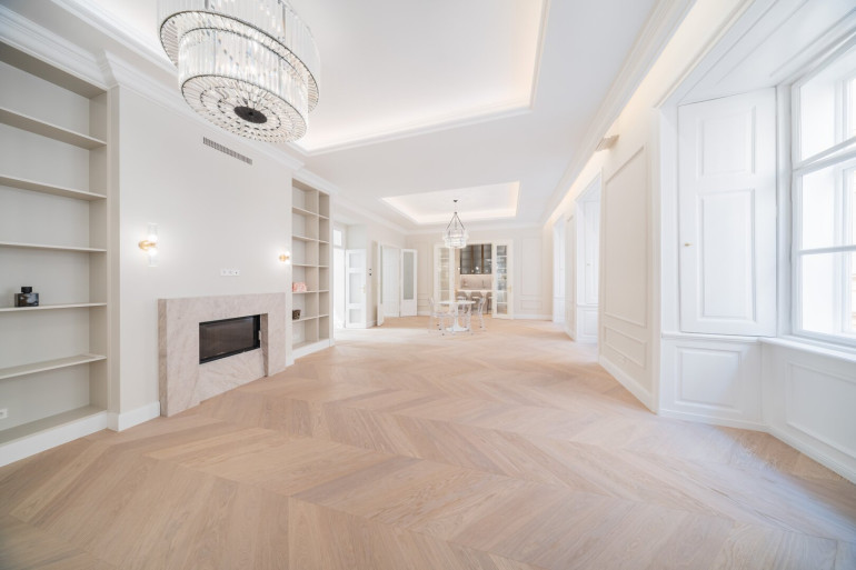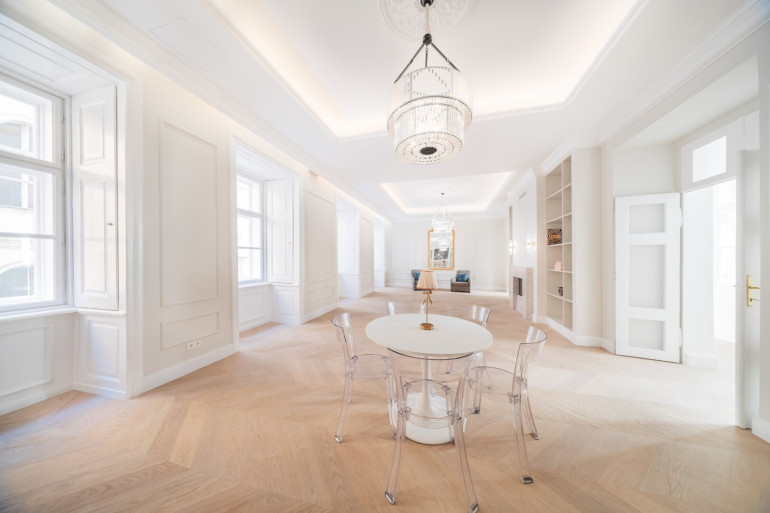 Zum Verkauf steht eine außergewöhnliche, ca. 190 m² große Altbau-Residenz im Herzen Wiens. Das repräsentative Objekt wurde umfassend generalsaniert und verbindet stilvolle Eleganz mit durchdachter Raumaufteilung. Großzügige Fensterflächen sorgen für eine beeindruckende Helligkeit in allen Räumen und schaffen eine einladende, freundliche Wohnatmosphäre. Der ca. 60 m² große Wohn- und Essbereich mit offenem Kamin bildet das Herzstück der Wohnung – ideal für repräsentative Abende ebenso wie für entspannte Stunden im Alltag.