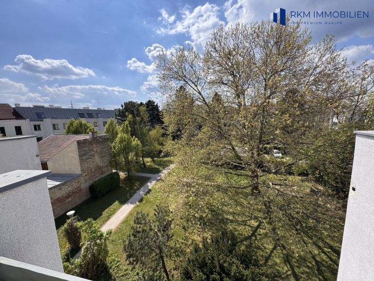 Aus den Fenstern genießen Sie einen wunderschönen Blick in den ruhigen Innenhof, der sich ideal zum Entspannen eignet und Kindern Platz zum Spielen auf der Grünfläche bietet.