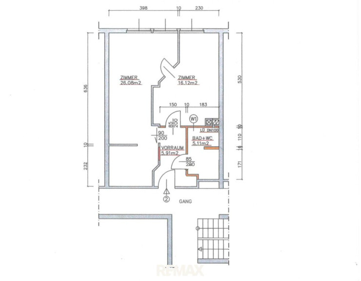 - Zimmer: 2 (separat begehbar)