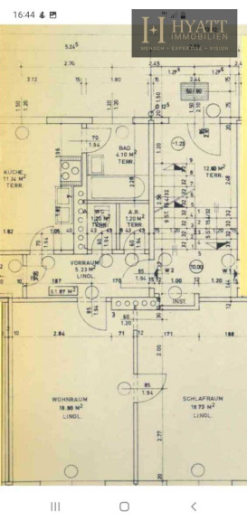 Beim Betreten der Wohnung gelangt man in einen zentralen Vorraum, der alle Räume effizient erschließt. Der großzügige Wohnraum (ca. 18 m²) überzeugt mit seiner freundlichen Atmosphäre und bietet ausreichend Platz für Wohnen und Essen. Direkt angrenzend befindet sich die funktionale Küche (ca. 11 m²), die durch ihre klare Struktur und gute Nutzbarkeit punktet.